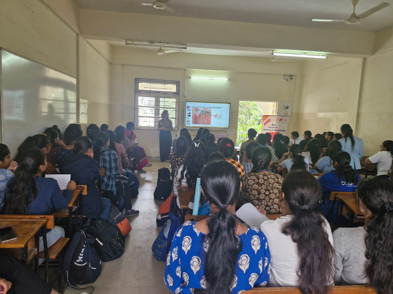 The Department of Business Studies organized a guest lecture on “Careers in Aviation on September 25 th , 2024. The lecture was conducted by the team of Poise Academy in Aviation, Ms. Kusum a prominent figure in the aviation industry. Gave insights about Aviation Careers such as Cabin Crew, Ground Staff and Hotel Staff.