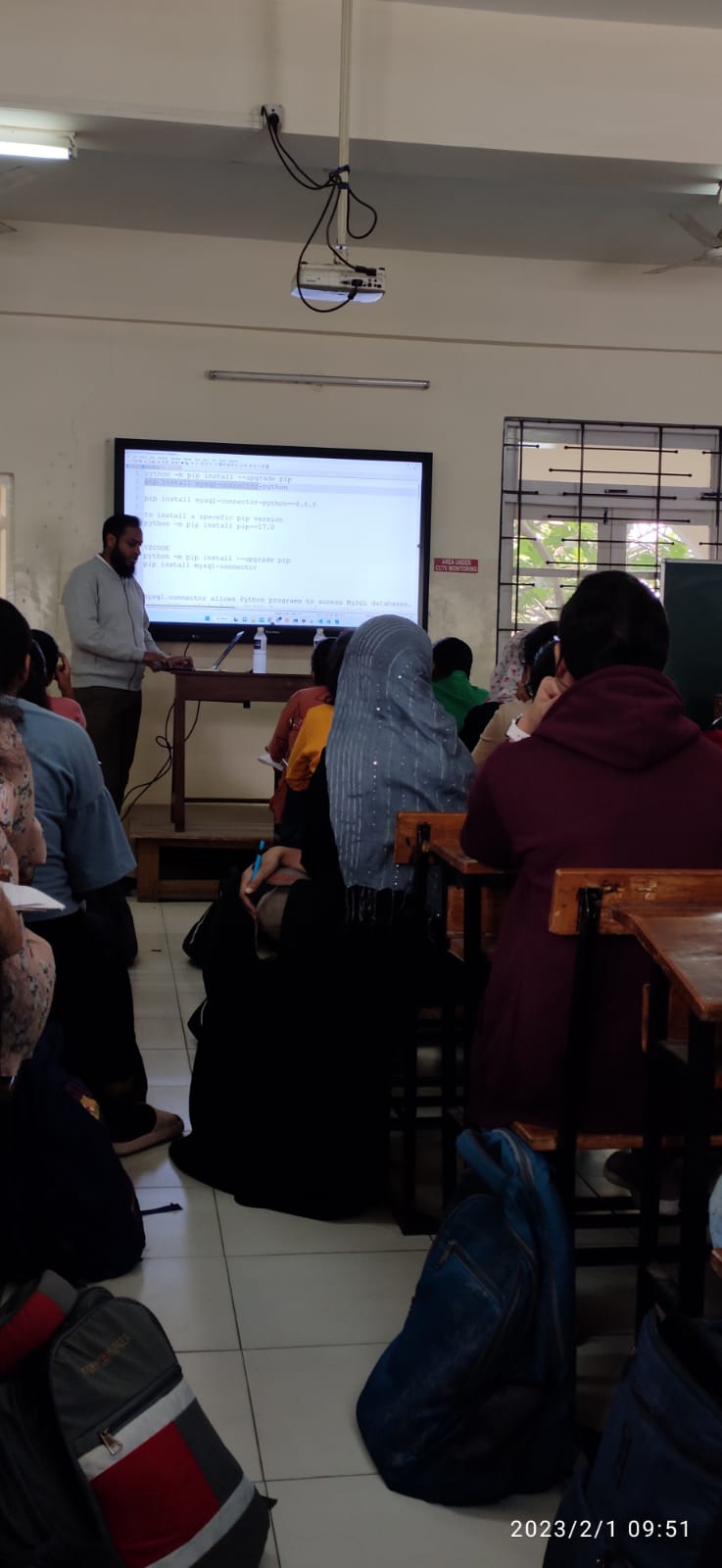 BBA(CA) Department organized an “Industry Expert Interaction” for SY and TY BBA(CA). The resource person was Mr. Umar Solanki, corporate trainer and Java Developer from EnumTech Technology Solutions LLP. 100 students and faculty member, Mrs. Monika Rajguru, were present. Mr. Solanki has done his master’s in computer engineering and has more than 10 years of experience in working on large and impactful projects in the IT domain. Mr. Solanki emphasized that in addition to learning the academic curriculum, students should attempt to learn the latest programming languages trending in IT industry. Mr. Solanki shared information on python programming language and its scope. He described the difference between python and other programming languages. He also explained how to get started with python and install it, define functions, library files available and database connectivity etc. The session was extremely interesting and interactive for the students.