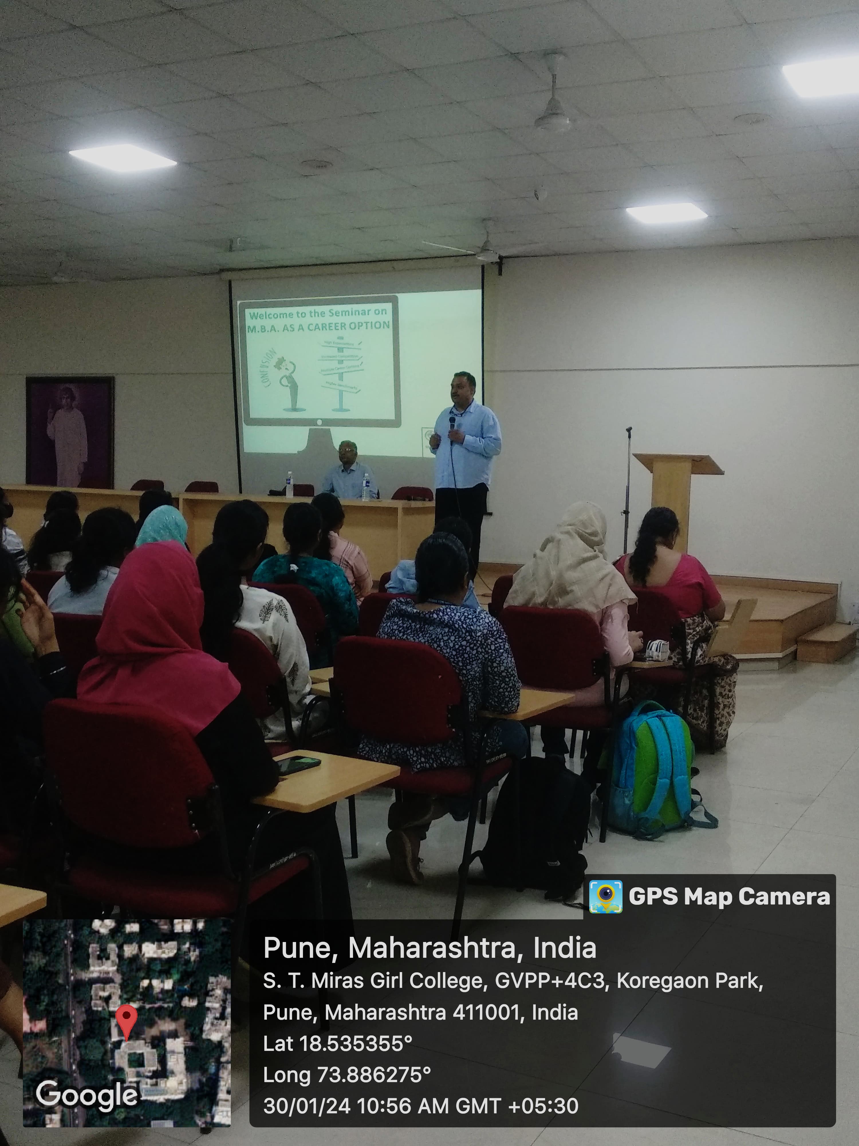 On 30th January 2024, St. Mira's College for Girls in Pune hosted a session on the career prospects of pursuing an MBA. The event featured esteemed speakers, Directors of T.I.M.E, Mr. Rahul Mahabir, and Mr. Rahul Gupta, drawing an audience of 167 students to the AV Room. The session commenced with a broad exploration of career options, spanning various fields and areas across different academic streams. Emphasis was placed on the crucial role of decision-making in career planning, followed by an insightful discussion on the importance of mathematics in aptitude tests for MBA entrance. The speakers engaged the audience in evaluating decision-making parameters based on real-life incidents and the correctness of choices. Further, they delved into BBA options as a foundation for pursuing an MBA, considering scenarios for freshers, individuals with working experience, and the introduction of new programs. The visionary aspect of success was discussed through perspectives from Swami Vivekanand and Ambani, highlighting the individual's pivotal role in success and failure. The session also touched upon mindset and success, distinguishing between "Chinta" (worry) and "Chitam" (mind), emphasizing the positive mindset required for achievement. Fear was identified as the root cause of failure. Practical advice on MBA preparation and skills was provided, focusing on the general MBA course structure, management skills, and the importance of identifying personal strengths rather than pursuing MBA solely for lucrative placements and packages. The speakers introduced the significance of the Written Ability Test (WAT) in MBA admissions, shedding light on major MBA entrance exams such as CAT, CET, XAT, SNAP, among others. A crucial takeaway was the clarification on the importance of percentiles over percentages in these entrance exams. In conclusion, the session offered valuable insights to guide students on informed and strategic decision-making for their future careers.