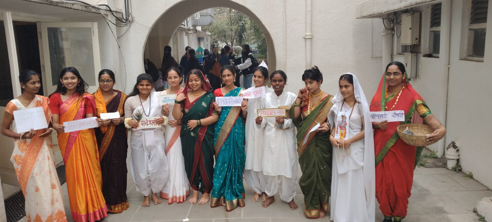 On 13th January 2025, a "Marathi Literary Costume Competition" ( Marathi Sahityikanchi Veshbhusha) was organized. Students participated by dressing up as renowned Marathi Sahityikanchi Veshbhusha such as Sant Dnyaneshwar, Sant Kanhopatra, Sant Mirabai, Bahinabai Chaudhary, Ramabai Ranade, Sarojini Babar, Sane Guruji, Kusumavati Deshpande, Padma Gole, Annabhau Sathe, and Mallika Amar Sheikh.