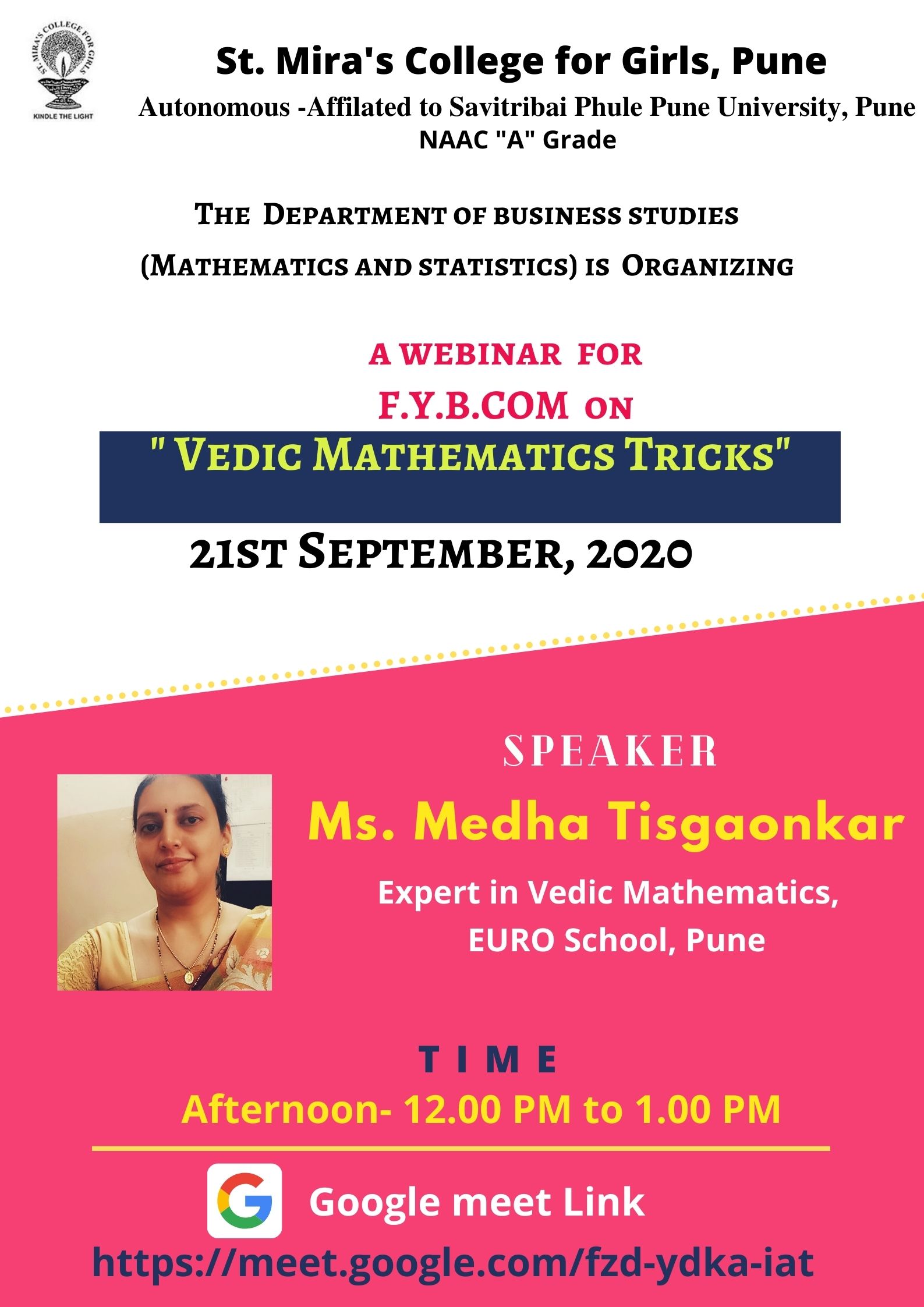 On 26th June 2020, students of St. Mira’s college were offered an opportunity to address one of the major roadblocks that they were facing in their career due to COVID-19, through a webinar on “Post COVID Job Scenario and Interview Skills”